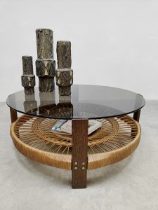 Vintage Scandinavian design rattan coffee table smoked glass rotan salontafel