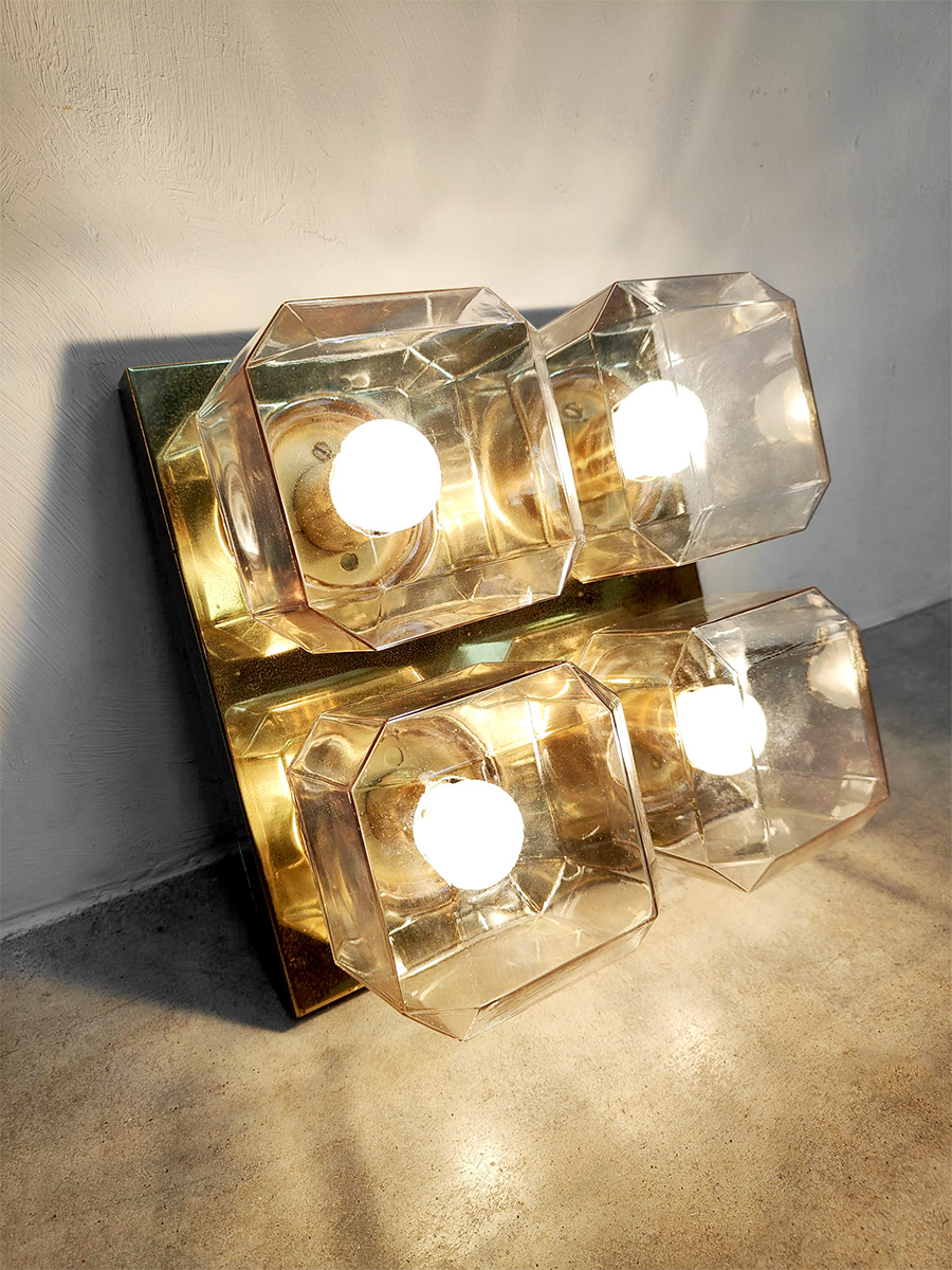 Vintage brass ceiling wall lamp Ice Cube Glass scones Peill & Putzler