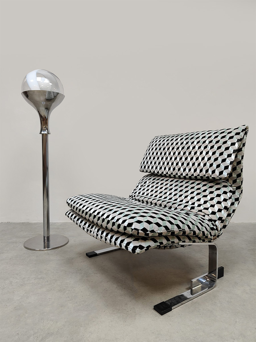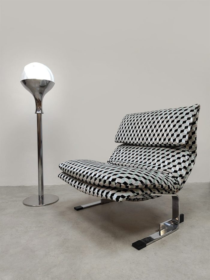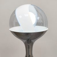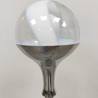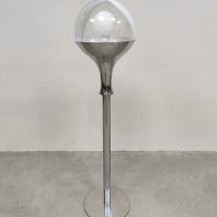 Beautiful in its simplicity this rare Italian floor lamp of Murano glass. Period: 1960. Country of origin: Italy. A design by Targetti Sankey. Beautiful clear mouth blown Murano glass resting on a beautiful chrome base. The semi ‘swirl’ glass ball gives a beautiful diffuse light. Considering its age this special floor lamp is still in very good condition. This stylish floor lamp is absolutely a feast for the eyes. Beautiful in a modern as well as vintage interior. Lighten up your room!