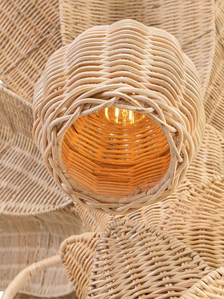 Tropical dreams! This XXL rattan palm tree lamp is absolutely next level. With its impressive height of no less than 280 cm and playful rattan leaves, this eye-catcher brings instant tropical vibes into your home. The lampshades dangling between the leaves give a warm, atmospheric light in the evening, as if you are lounging under the stars on an island. Perfect for a boho chic interior, a tropical theme or simply because you love a statement piece. This floor lamp is made of natural rattan and is guaranteed to make a surprising impression. Big, bold and super stylish. Aloha in your living room. Tropical vibes!