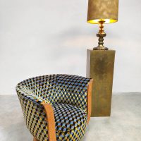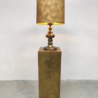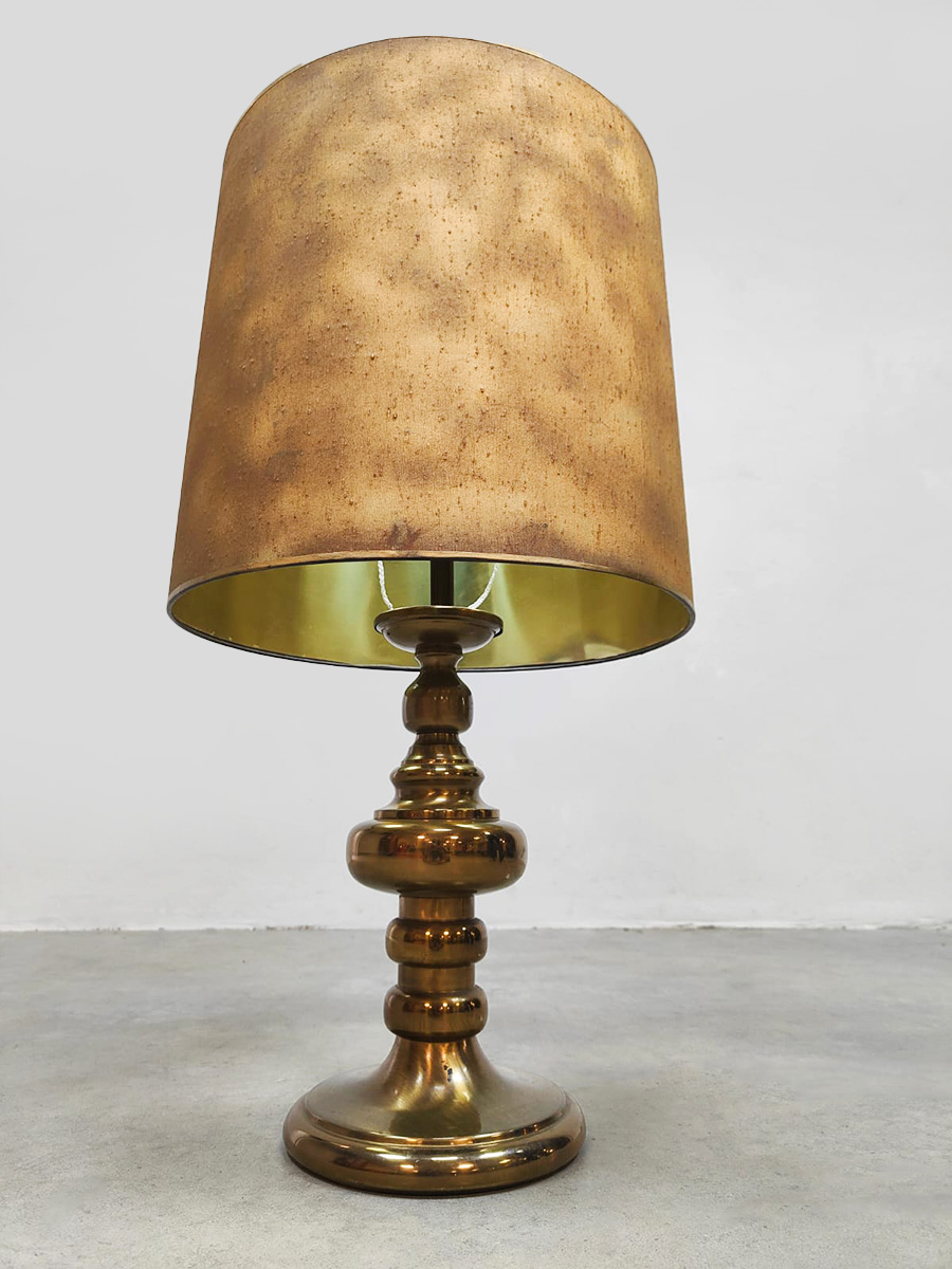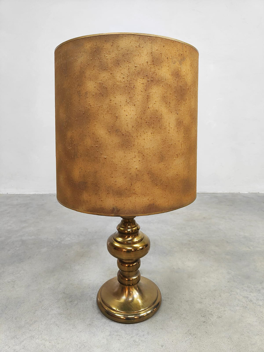 This special vintage table lamp is an absolute eye-catcher for the living room. Period: 1960, in Hollywood regency style. Country of origin: France. The copper base has a playful design with various curves. The shade is a real eye-catcher and has various color nuances in gold / brown tones that beautifully diffuse the light. Considering its age still in good vintage condition. Are you looking for that little bit of extra glamour for your home, hotel, bar or restaurant?