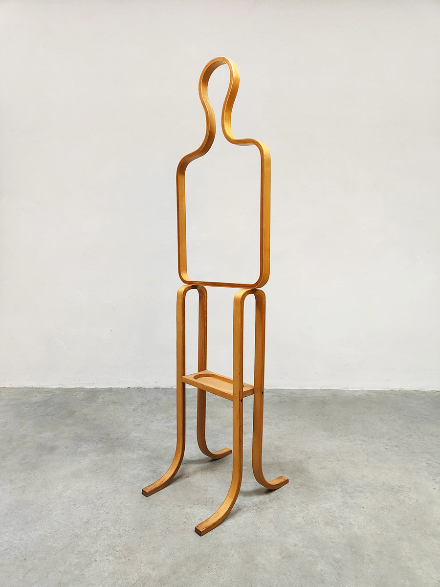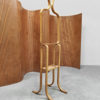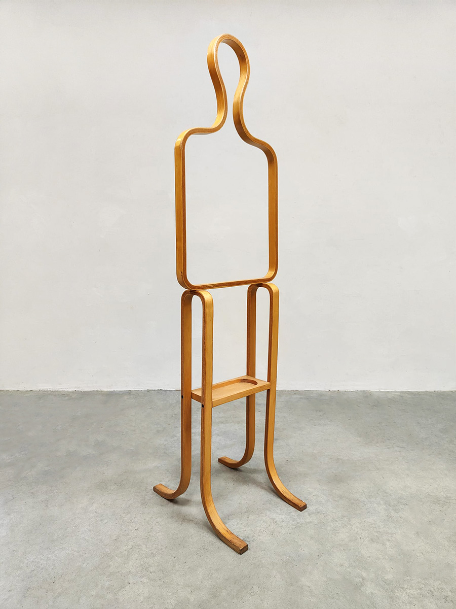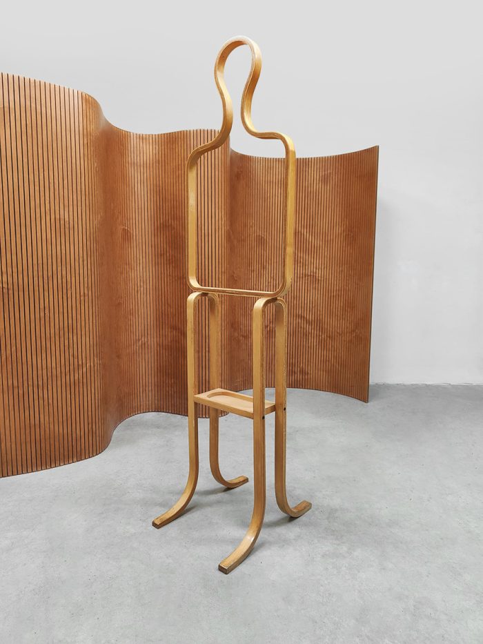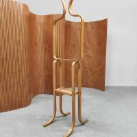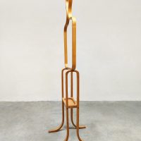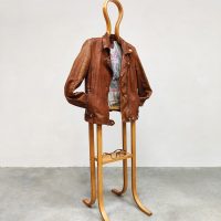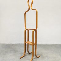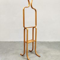 Elegantly designed vintage valet stand, made in Italy in the 70s. Made of bent beech wood (bentwood) with a flowing, almost sculptural silhouette reminiscent of the organic style of Alvar Aalto. The figure shape functions as a clothes hanger for jackets, trousers and accessories, while adding a decorative element to the room. This valet stand also has a handy shelf to store your accessories and smaller items. Considering its age in a good vintage condition. A stylish and functional piece of furniture for the hall, bedroom or dressing room. Will this special valet stand be proudly displayed at your place soon?