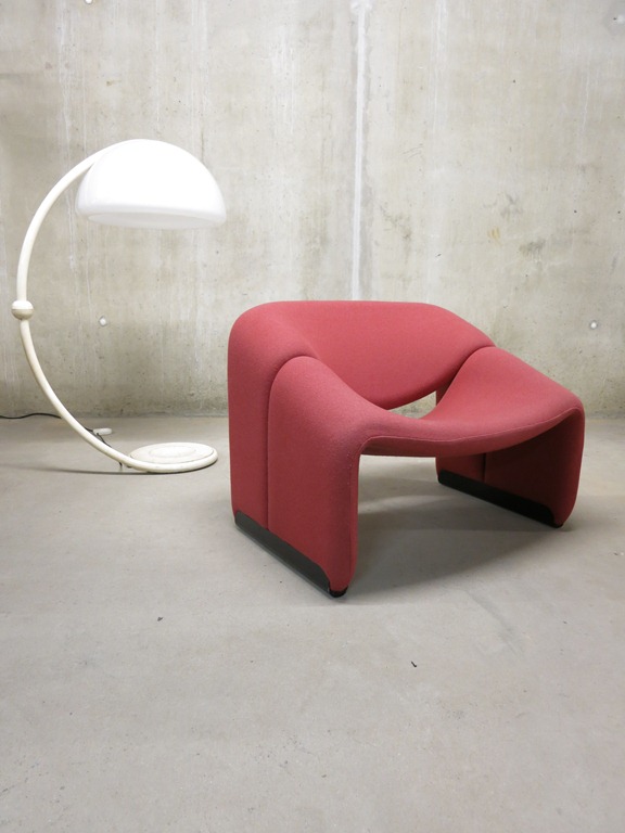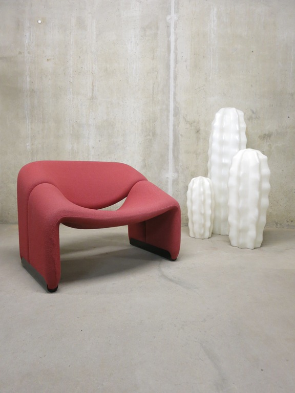 Een originele Artifort vintage lounge fauteuil F598, een ontwerp van Pierre Paulin. Bekend als de Groovy fauteuil, ook wel de M-chair genoemd. Periode: jaren 70. Materiaal: bekleed met originele oude roze wollen stof en een zwart gecoat aluminium profiel aan de onderzijde. Afmetingen: H0.64 x B0.83 x D0.57 cm, zitdiepte 0.44 cm, zithoogte 0.37 cm. Door zijn beperkte afmetingen oogt deze ruimtelijk in zijn omgeving. Deze fauteuil verkeert in zeer goede vintage staat, zowel de vulling als de stoffering. Absoluut een heerlijk zitcomfort, deze ‘groovy’ zitschelp. Staat deze binnenkort bij jouw in de woonkamer te pronken? De groovy van Pauling is een echte Artifort klassieker. Prijs: verkocht