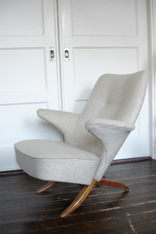 Pinguin…, dat is het eerste wat je denkt bij het zien van deze stoel. Deze stoel is ontworpen door Theo Ruth voor Artifort in 1957. Voor die tijd een absoluut progressief ontwerp (gebaseerd op de Afrikaanse design stoel ) De prachtige wollen bi-color stof is nog in perfecte staat en stijlvolle houten poten. Deze stoel bestaat uit 2 delen, makkelijk uit elkaar te nemen en op te bergen. Afmetigen: H83xB76xD80 cm. Deze stoel is in zeer goede vintage conditie (met uitzondering van 1 armleuning zit iets los) en zit echt fantastisch! Deze comfortabele lounge stoel staat grandioos in een modern design interieur!