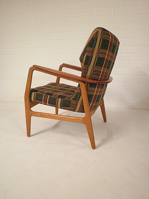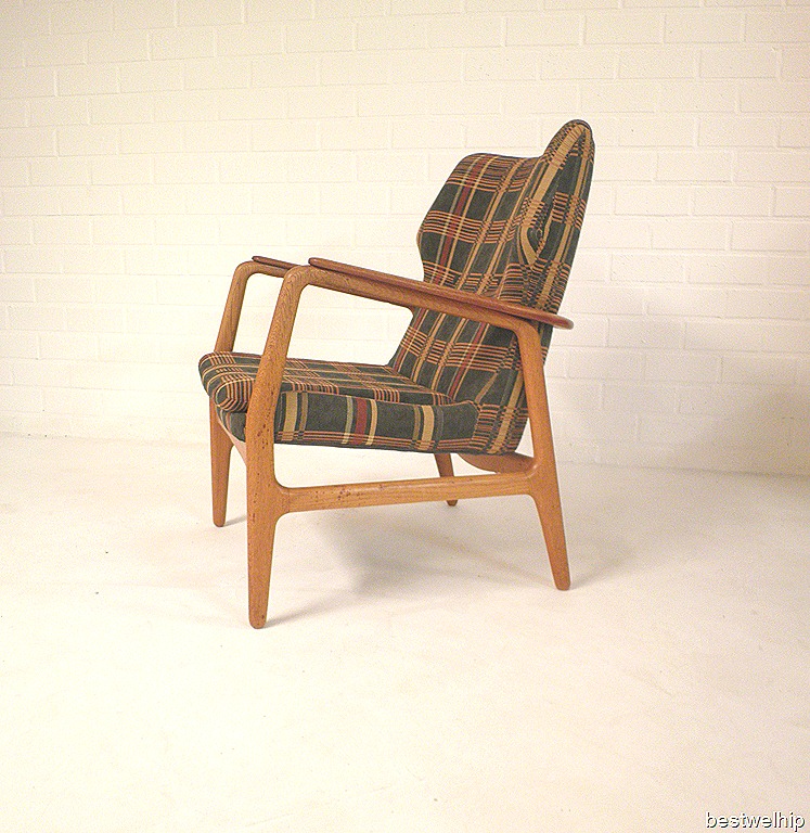 Prachtige design klassieker met lage rugleuning van de de beroemde Nederlandse merk Bovenkamp, Holland. Periode: jaren 50/60. Het design van deze stoel is geïnspireerd op de Scandinavische vormen. Kenmerkend aan deze stoel is de doorlopende armlegger van massief teakhout. Materiaal: teak frame blank hout geloogd, opnieuw professioneel bekleed en voorzien van een koud schuim vulling. In zeer goede vintage staat. Heb jij een bijzondere plek voor deze bijzondere stoel? Prijs: verkocht