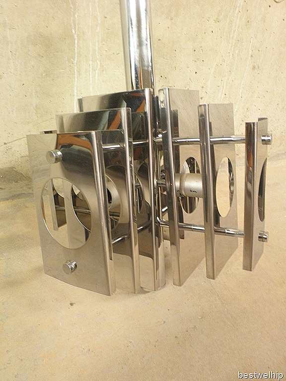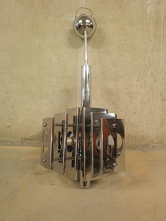 Zeer mooie zware chromen vintage design hanglamp van Geatano Sciolari. Herkomst: Italië. De lamp verkeerd gezien zijn leeftijd in goede vintage staat. Materiaal: chroom. Afmetingen: H0.84 x D0.40. Gezien de leeftijd nog in goede vintage staat. Absoluut een bijzondere design lamp voor boven de tafel of in de hal. Prijs: verkocht