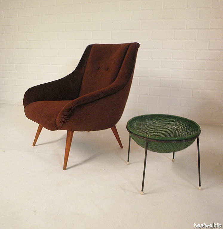 Een zeer bijzondere mooi gevormde cocktail chair / club fauteuil, stijlvol & elegant. Land van herkomst: waarschijnlijk Italiaans. Periode: fifties. Materiaal: prachtig bruin rib velour ( opnieuw bekleed dus ziet er als nieuw uit! ) & houten poten. Afmetingen: B69 x H77 x D64 cm. Deze club fauteuil is gezien zijn leeftijd nog in zeer goede vintage staat. Een tijdloos exemplaar, ideaal om bij te zetten en een boekje in te lezen. Doordat hij een lage rug heeft, oogt deze stoel zeer ruimtelijk in zijn omgeving. Een heerlijk zitcomfort.