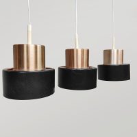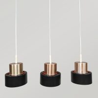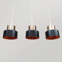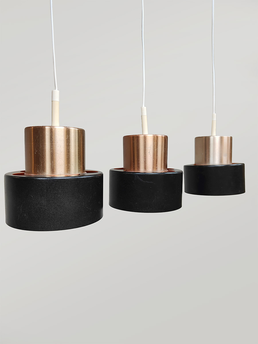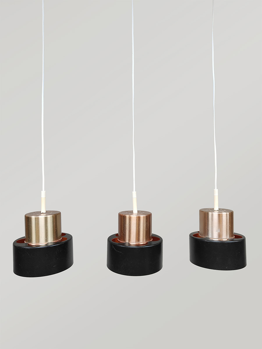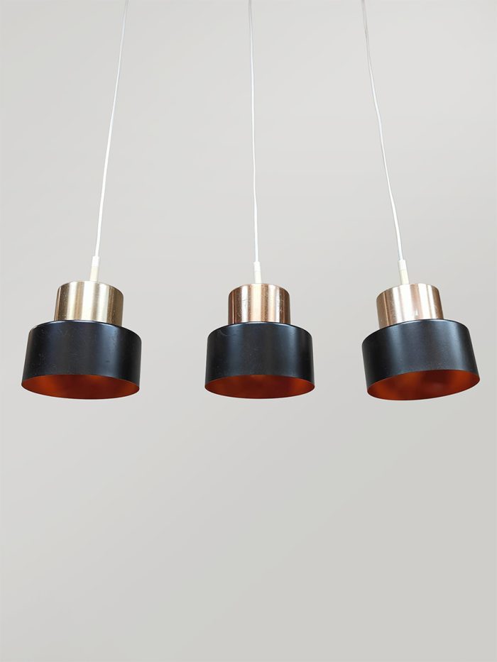 Breng karakter en tijdloze elegantie in je interieur met deze drie Deense hanglampen uit de jaren ’70. Uitgevoerd in warm messing en vormgegeven in de stijl van het iconische merk Fog & Mørup. Een leuk detail is de oranje binnenkant. Deze 3 lampen zijn leuk voor boven een tafel, kookeiland of bar en zorgen voor een sfeervol, diffuus licht. Makkelijk te plaatsen door zijn bescheiden afmetingen. Mooi voor in een modern als vintage interieur. Verlicht!