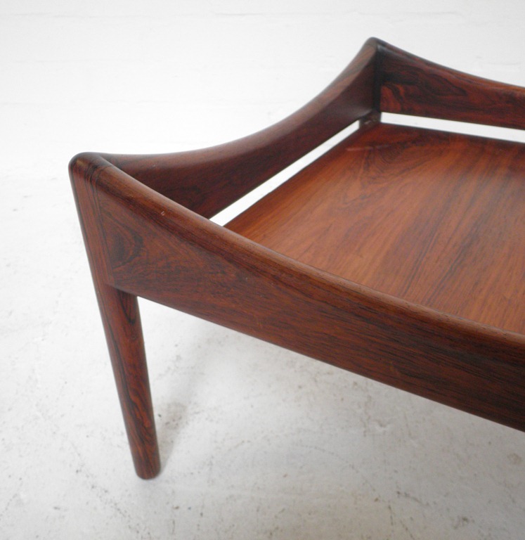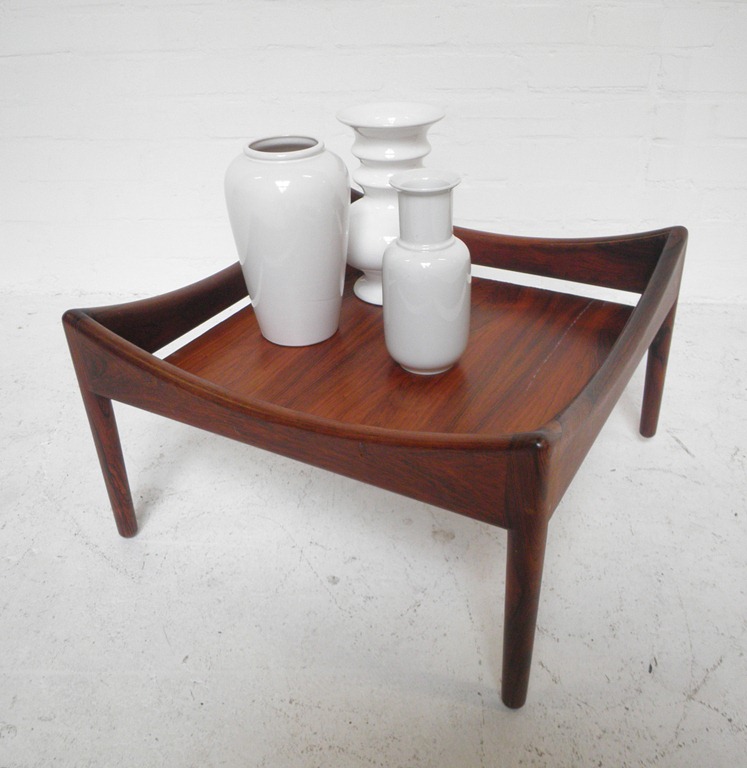 Stijlvolle en bijzondere vintage design bijzet tafel / hoek tafel van de ontwerper Kristian Solmer Vedel voor Soren Willadsens. Model: Modus table (hoort bij de serie van de Modus chair) Periode: 1963. Herkomst: Denemarken. Materiaal: palissander & aluminium. Het tafelblad is omkeerbaar, het materiaal hiervan is aluminimum. Enerzijds voorzien van een palissander fineer laag, anderzijds licht grijs. Afmetingen: L54.5 x B54.5 x H32 cm. Gezien de leeftijd in goede vintage staat, enige ‘sporen’ aan de fineer laag van de aluminium plaat. Prachtig om bij te zetten naast je bank, stoel of gewoon om te gebruiken als tijdschriften of koffie tafeltje. Prijs: verkocht