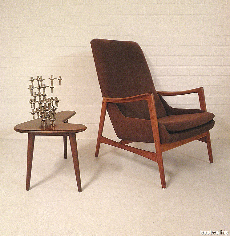 Fantastische Deense mid century Lounge chair heerlijk om in te zitten en om een boekje in de lezen of tv in te kijken. Land van herkomst: Zweeds. Periode: jaren 50/60. Ontwerper: Folke Ohlsson. Producent: Zweedse meubelfabrikant DUX. Doet ook denken aan de stijl van Bovenkamp en Finn Juhl. Materiaal: teak houten frame. Een bijzonder houten frame met prachtig gebogen armleuningen en een goed zitcomfort. De stoel heeft bovenop enige verkleuring verder is de stof en foam in prima staat gezien de leeftijd. In het verleden is 1 poot gerestaureerd maar dit valt nauwelijks op en is in goede orde herstelt. Absoluut een echt Deens klassiek ontwerp en comfortabele stoel. Is jou oog gevallen op deze bijzondere Deense fauteuil?