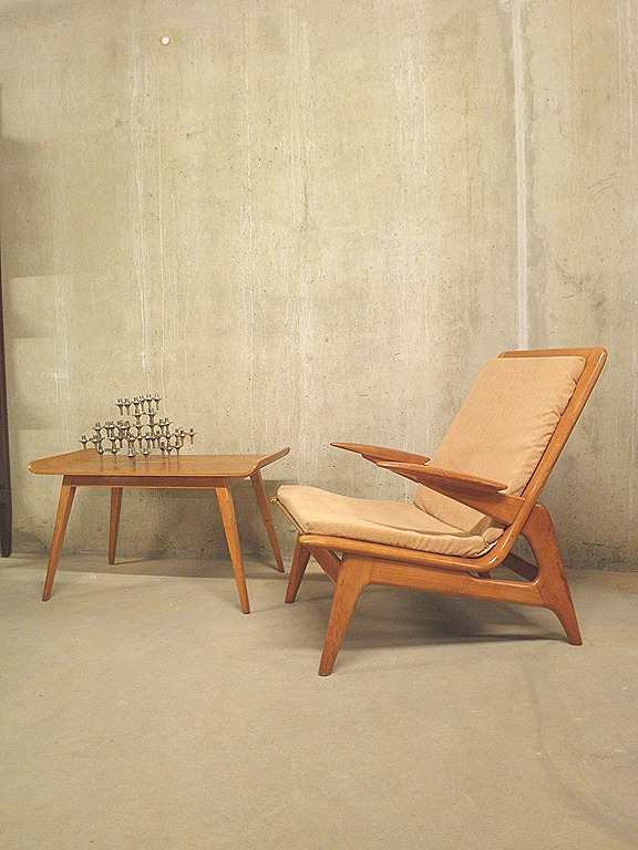 Zeer bijzonder in zijn soort is deze lage vintage design easy chair/ fauteuil. Producent: De Ster/ Gelderland Holland. Ontwerper: onbekend, doet denken aan Finn Juhl. Periode: jaren 50. Materiaal: massief hout in warme blonde beuken kleur. Afmetingen: H0.95 x B0.60 x D0.78 cm, zithoogte 0.38, zitdiepte 0.38 cm. Gezien de leeftijd nog in goed gebruikte vintage staat. Als je deze prachtige stoel stoffeert in een passende stof bij je interieur heb je echt een zeldzame design special in huis staan.