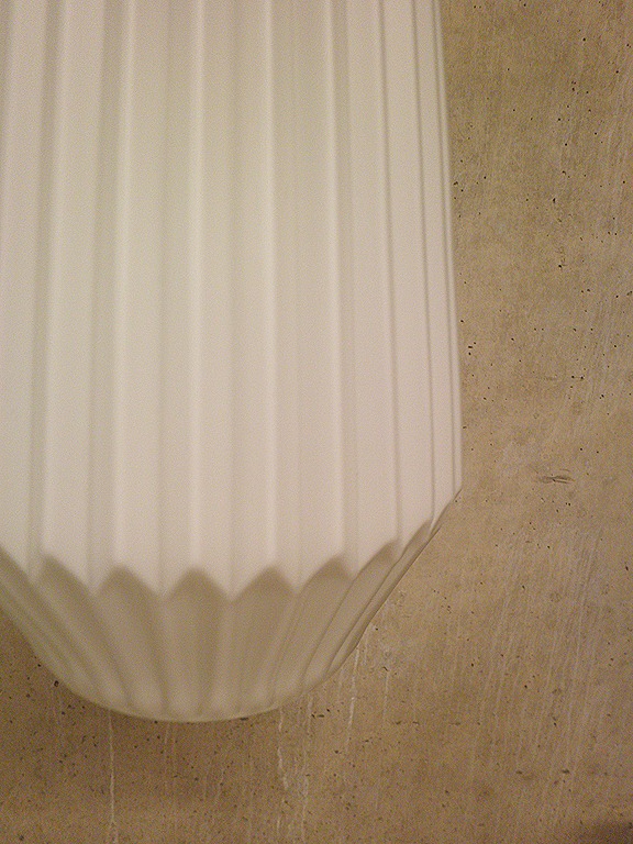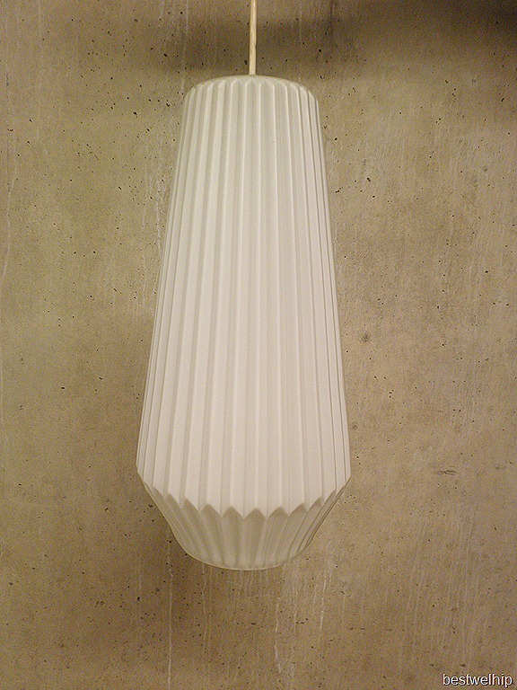 Prachtige opal glazen hanglamp in Deense stijl. Periode: jaren 60. Kleur: wit. Afmetingen: H42 cm, diameter 20 cm. Zeer bijzonder en stijlvol vormgegeven door de ‘plooien’ in het glas van de kelk. Nog in zeer goede vintage staat. Mooi voor boven de salontafel of in een hal. Prijs: verkocht