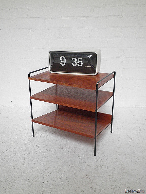 Bijzondere authentieke lectuurbak, krantenbak/tijdschriftenrek en vintage bijzettafel in een! Absoluut een eye-catcher. Periode: jaren 60. Ontwerper: waarschijnlijk Pilastro of Tomado Holland. Materiaal: hout in combinatie met metalen frame. In goede vintage staat, minimale gebruikerssporen. Speciaal door zijn strakke vormgeving. Een stijlvol contrast tussen het warme teak houten blad & het industriële metalen frame. Afmetingen: B41 x D30 x H40 cm. Deze lectuurbak/ bijzettafel past door zijn design zowel prachtig in ‘n vintage- als in ‘n modern interieur. Heb jij dat plekje nog vrij in je kamer naast je bank? Prijs: verkocht