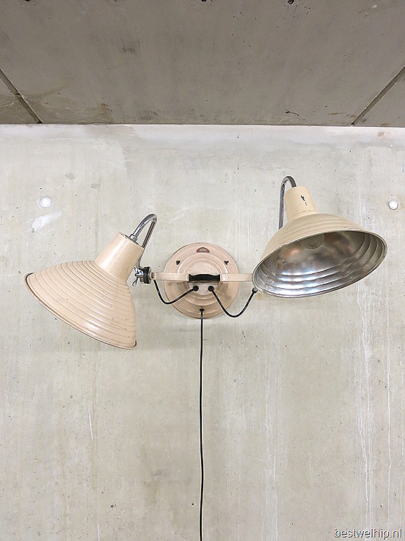 One of a kind…deze stoere 2-arms wandlamp. Periode: jaren 50. Deze industriële lamp is omgebouwd naar een gewone fitting. Materiaal: metaal/ aluminium. Uniek in zijn soort. Prachtig om aan de muur te bevestigen of om neer te zetten. Door zijn doorleefde uiterlijk, een stoer exemplaar wat gezien mag worden. Is jou oog gevallen op dit uniek exemplaar? Materiaal: metaal. Uniek in zijn soort. Mooi in zowel ‘n modern interieur als in een industrieel interieur. Prijs: verkocht