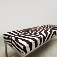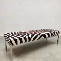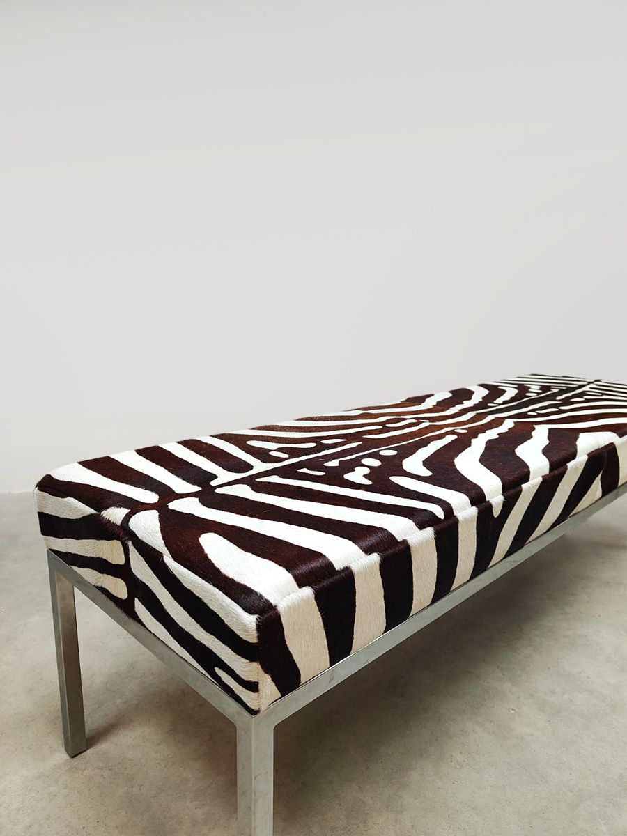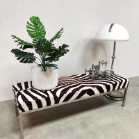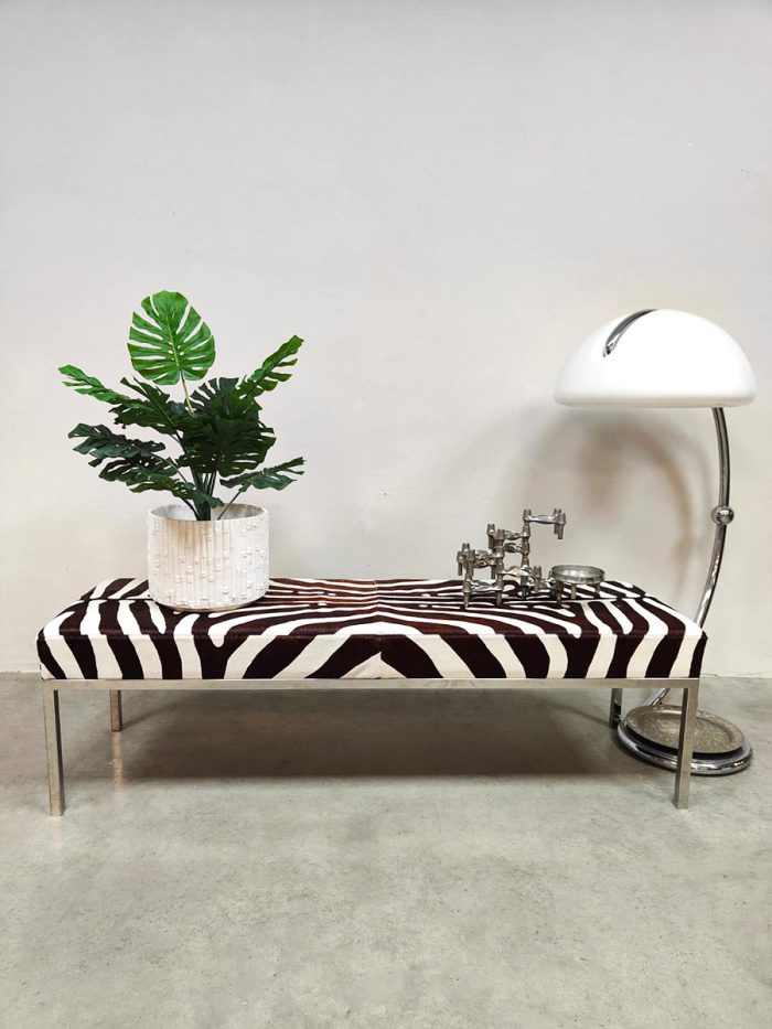 Zebra vibes! Deze te gekke designbank van Michael Kors is echt een statement piece. Het stoere zebra-patroon op de zitting geeft direct een opvallende touch aan je interieur. De strakke RVS poten zorgen voor een modern en minimalistisch karakter, perfect voor wie houdt van een edgy look met een luxe randje. Ideaal als side table, als stijlvolle eyecatcher in de hal of gewoon als relaxte zitplek in de woonkamer. Deze bank is niet alleen een lust voor het oog, maar ook nog eens lekker stevig en comfortabel. Gezien de leeftijd is dit exemplaar in een goede conditie. Uniek, chique en een tikkie wild, wat wil je nog meer?