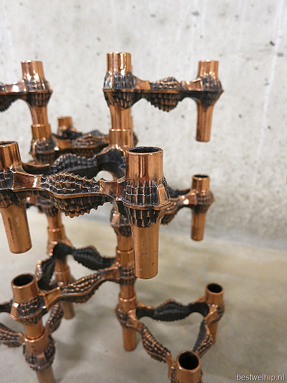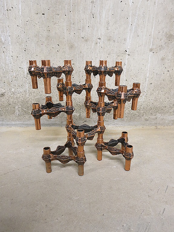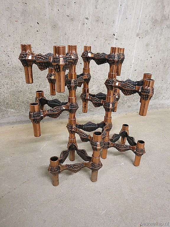 Een speciale uitgave bij het 100 jarig bestaan van Quist (variomaster) West Germany. Periode: jaren 60. Toen waren deze stapel kandelaars al een groot succes. Ze zijn zeer aantrekkelijk door hun bijzondere vorm en bouwsysteem. Deze ‘toren’ is in rosé kleur, momenteel een erg geliefde en zeldzame kleur. Naar eigen inzicht te stapelen. Ook wel eens ‘het lego voor de volwassenen’ genoemd. Nog in zeer goede vintage staat. Een prachtig kunstwerk/ object voor op tafel. Prijs: verkocht