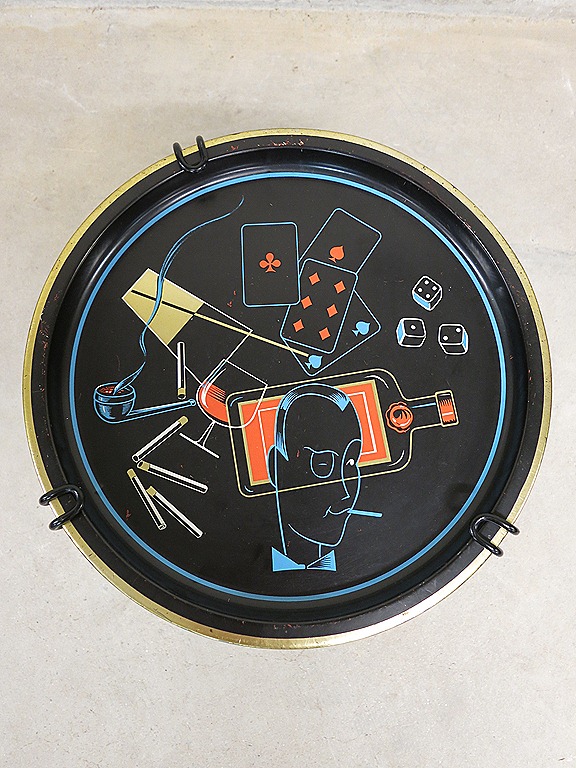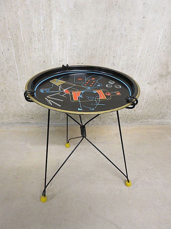 Zeldzaam industrieel tripot bijzettafeltje en dienblad ineen. Het metalen blad is afneembaar. Periode: jaren 50, 60. Dit unieke exemplaar ben ik nog niet eerder tegengekomen. Leuk om neer te zetten naast de bank of stoel en ideaal als bijzettafeltje. Gewoon ‘uniek in zijn soort’. Mooi in een modern, industrieel als vintage interieur. Prijs: verkocht
