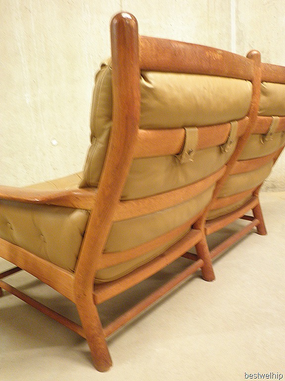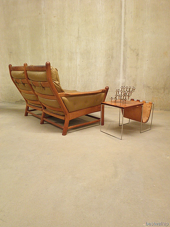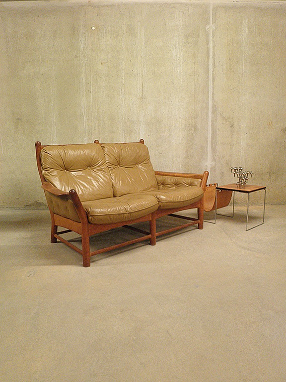 Vintage 2 zitbank, het design van de bank is geïnspireerd op de Scandinavische design vormen uit de jaren 60, weer helemaal hip! Stijlvol vormgegeven. Zowel de leren bekleding als het houtwerk verkeren in een goede conditie. Afmetingen: B 1.42 x D 0.77 x H 0.85, zithoogte 40 cm & zitdiepte 56 cm. Prijs: verkocht
