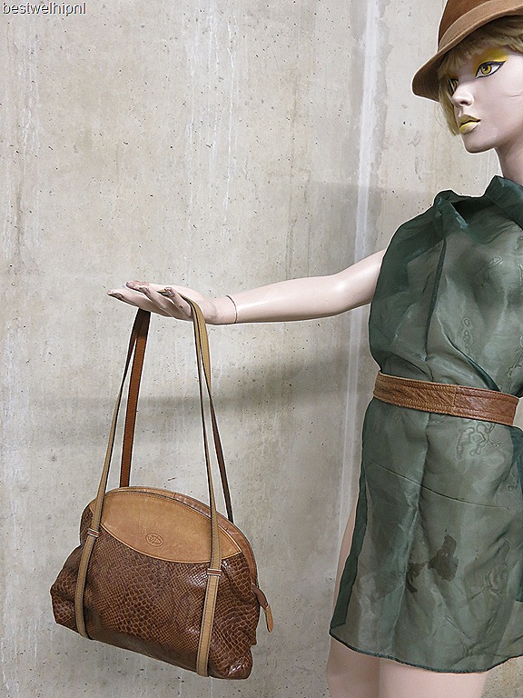 Prachtige vintage leren schoudertas. Periode: jaren 60/ 70. Voorzien van 2 binnen vakken met nog een klein insteekvakje. Voorkant is bedrukt met een logo (kroontje en een D) Nog in zeer goede vintage staat. Zeer soepen en mooi leer. Steel jij straks de ‘show’ met deze unieke vintage tas? Prijs: verkocht
