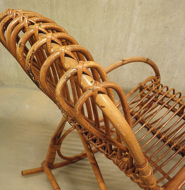 Prachtige grote vintage rotan schommelstoel/ rocking chair , heerlijk om in te relaxen of om in weg te dromen en je terug te trekken in je eigen wereld. Periode: jaren 60. Gezien de leeftijd nog in zeer goede vintage staat. Afmetingen: H88 x B58 x D96 cm, zithoogte 41 cm. Moet jij die bijzondere lounge bar inrichten of zoek al een tijdje naar dit unieke exemplaar voor in je living of veranda? Heerlijk relaxed om lekker in te schommelen terwijl de een boek leest of filmpje kijkt. Deze schommelstoel is ook prachtig voor op de babykamer om de kleine in slaap te wiegen. Ook creëert dit exemplaar ruimte in de kamer door zijn transparantie. Bijzonder mooi te combineren in een modern interieur. Absoluut een sfeermaker in huis. Prijs: verkocht