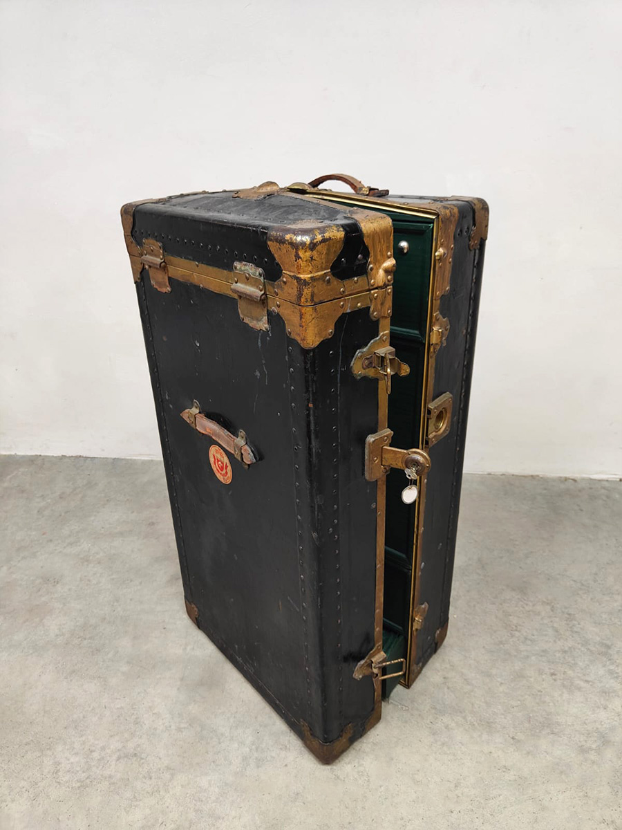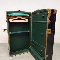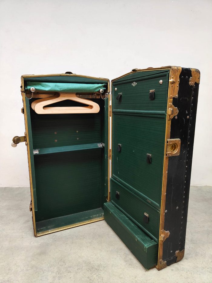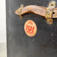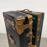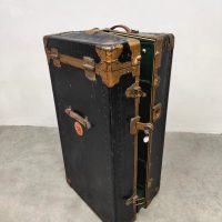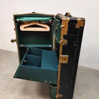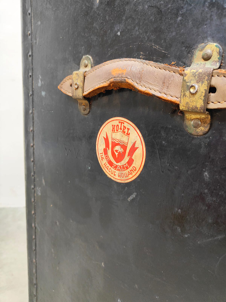 Old-school chique. Deze vintage hutkoffer uit de jaren 1920 is zoveel meer dan alleen een koffer. Met zijn houten frame, lederen details en metalen accenten ademt hij pure nostalgie en reisverhalen uit vervlogen tijden. Nog voorzien van een sticker met Hotel de zalm, The Hague Holland. Open ‘m en je ontdekt een heuse garderobe: lades, hangruimte en originele beslagjes. Perfect als statement piece in de slaapkamer, hal of walk-in closet. Of gewoon als ‘conversation piece’ in je interieur. Deze cabin wardrobe is een zeldzaam juweel voor liefhebbers van vintage, reizen en karaktervolle meubels. Gezien de leeftijd is dit exemplaar in een goede vintage conditie. Stoer, stijlvol en met een geschiedenis om U tegen te zeggen.