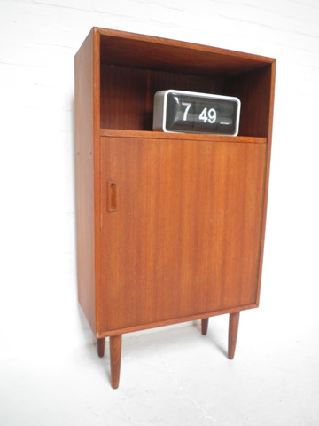 Vintage design kastje in Scandinavische Deense stijl. Periode: jaren 60. Voorzien van mooi gevormde handgreep en ranke poten. De kast is uitgevoerd in teakhout. Afmetingen: B62 x D30 x H1.10 cm. Gezien de leeftijd in goede vintage staat. Door zijn bescheiden afmetingen is dit strak vormgegeven kastje makkelijk te plaatsen in elke ruimte. Prijs: verkocht